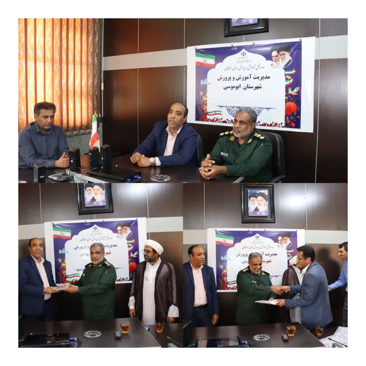 هرمزبان – به مناسبت گرامیداشت روز معلم، فرمانده ناحیه مقاومت بسیج سپاه بوموسی به همراه مسوول دفتر نمایندگی ولی فقیه و حفاظت و بسیج دانش آموزی با حضور در اداره آموزش و پرورش جزیره بوموسی، از معلمان بسیجی عرصه تعلیم و تربیت تقدیر کردند.