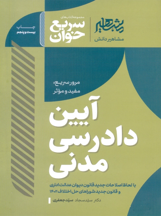 اگر به دنبال منبعی خلاصه، کاربردی و روان برای یادگیری و مرور آیین دادرسی مدنی هستید، کتاب سریعخوان آیین دادرسی مدنی نوشته سید سجاد سید جعفری و منتشرشده توسط انتشارات مشاهیر دانش، یکی از بهترین انتخابها خواهد بود. این کتاب میتواند به شما کمک کند تا در زمان کوتاه، نکات مهم را مرور کرده و آمادگی خود را برای امتحانات و آزمونهای حقوقی افزایش دهید.