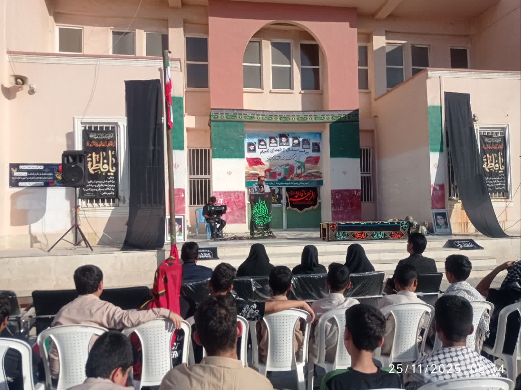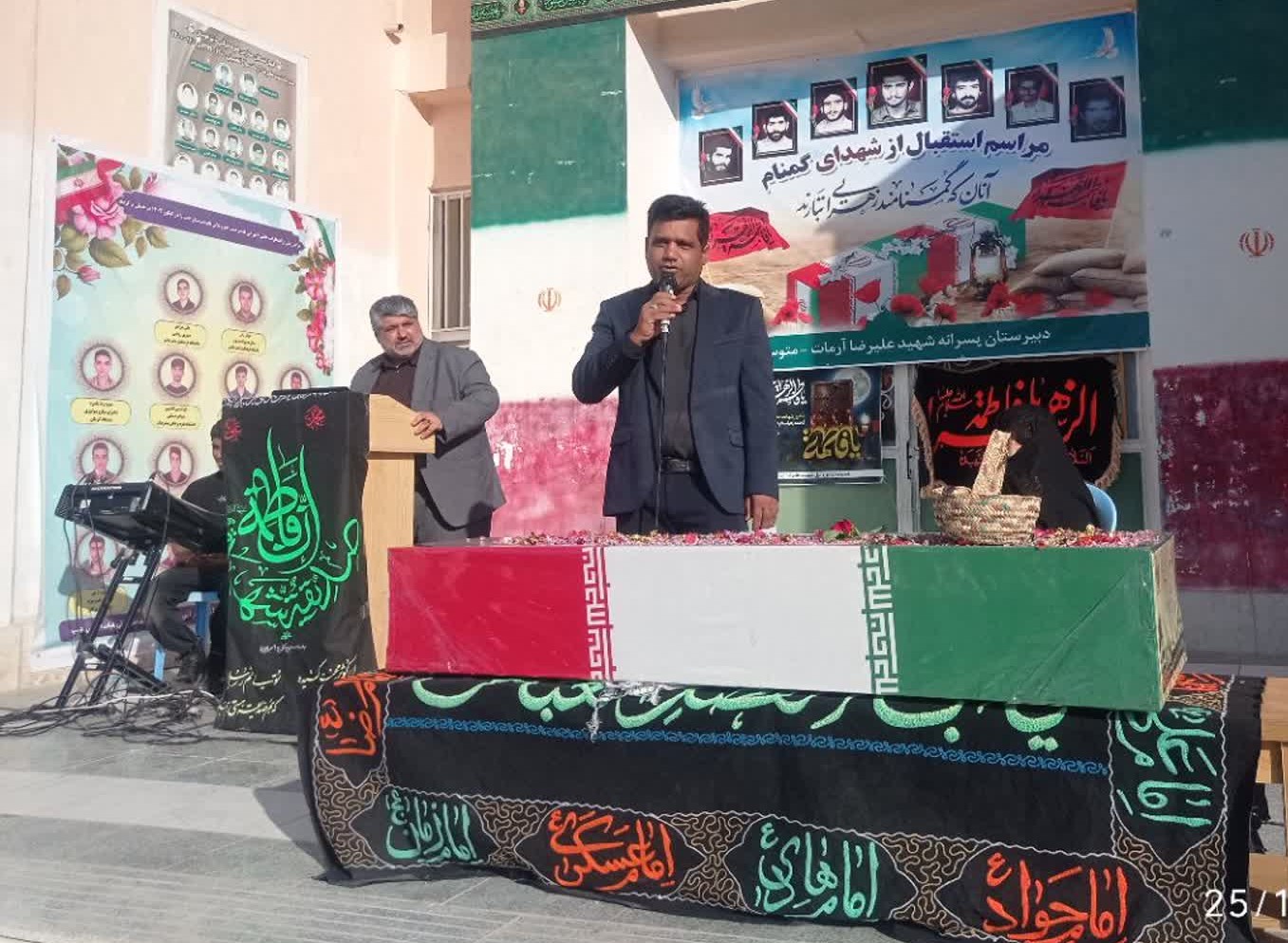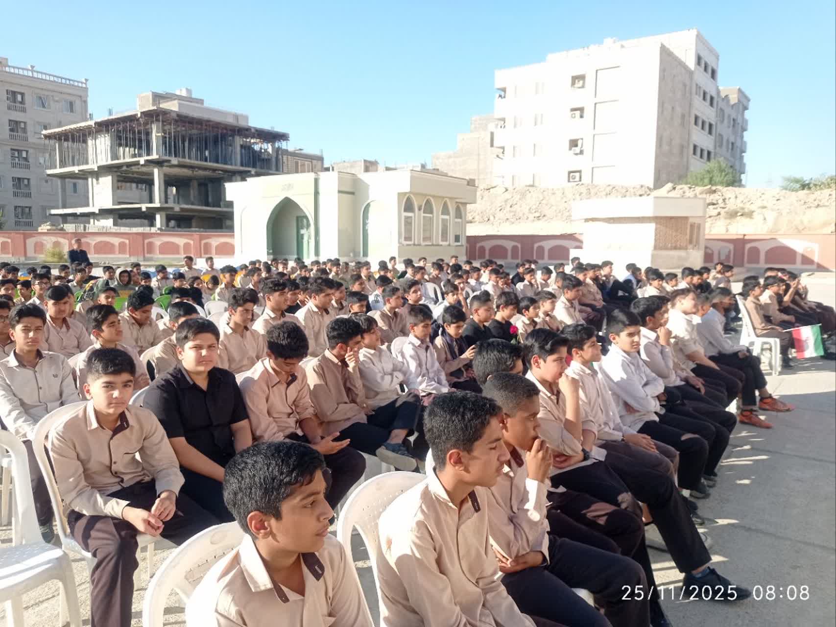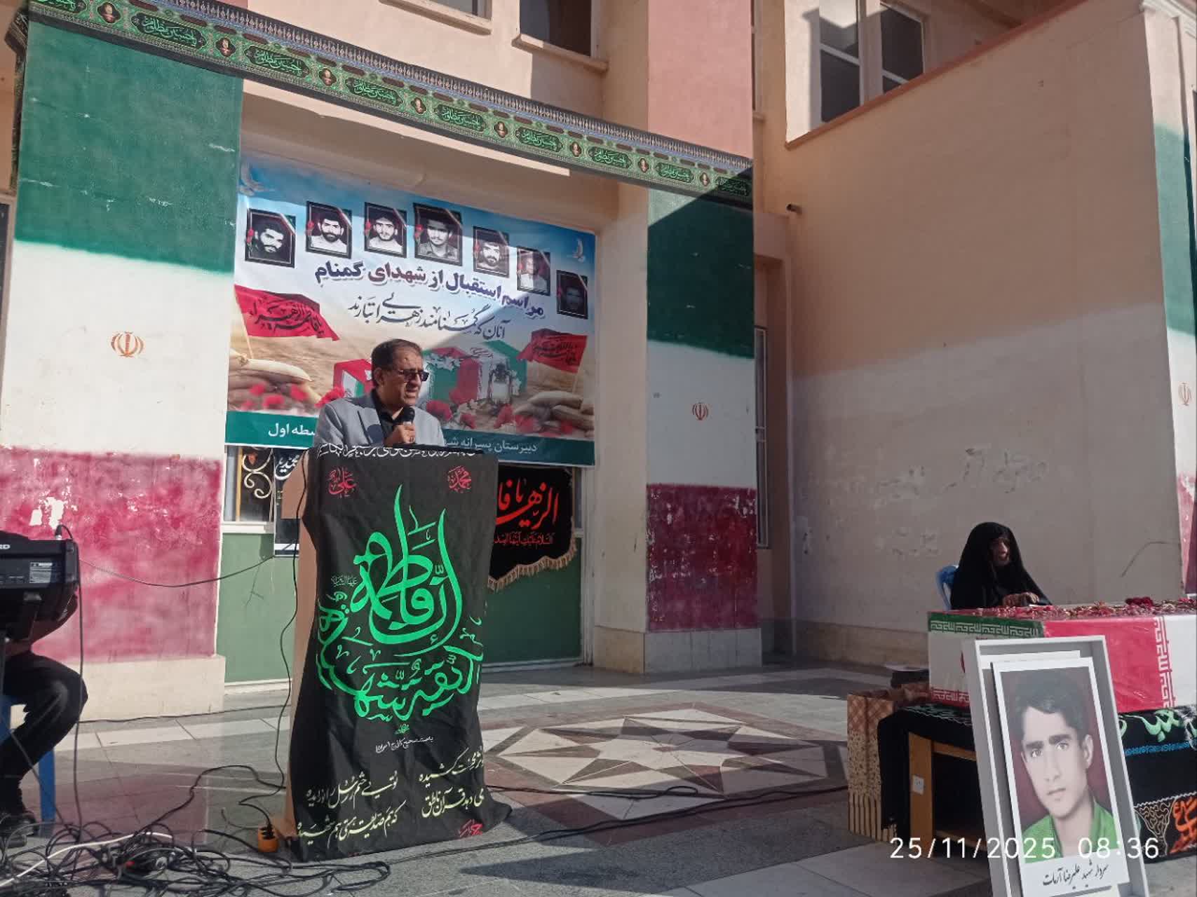 هرمزبان – پیکر مطهر شهید گمنام دفاع مقدس با استقبال پرشور دانش‌آموزان، فرهنگیان و خانواده‌های شهدا در مدرسه متوسطه اول شهید علیرضا آرمات بندرعباس حضور یافت و فضای مدرسه را آکنده از عطر ایثار، معنویت و حماسه کرد.
