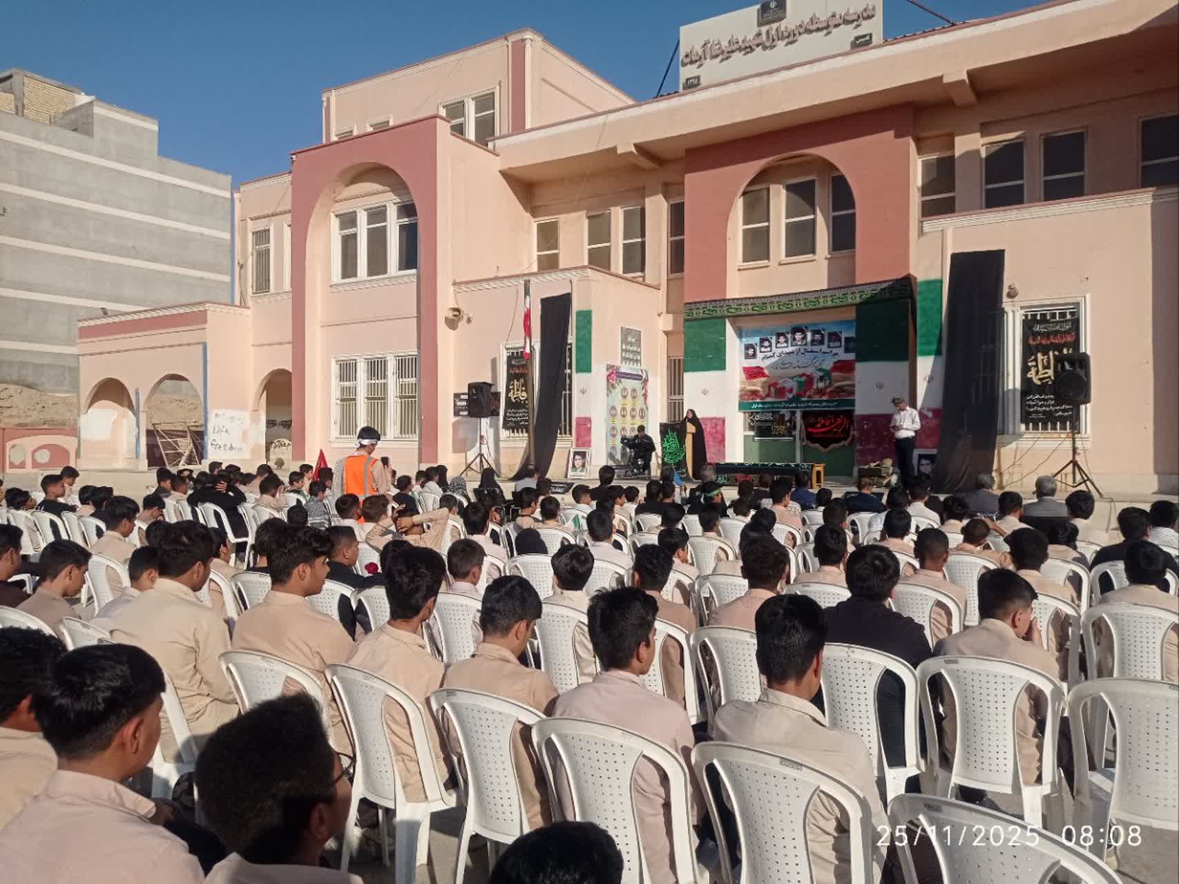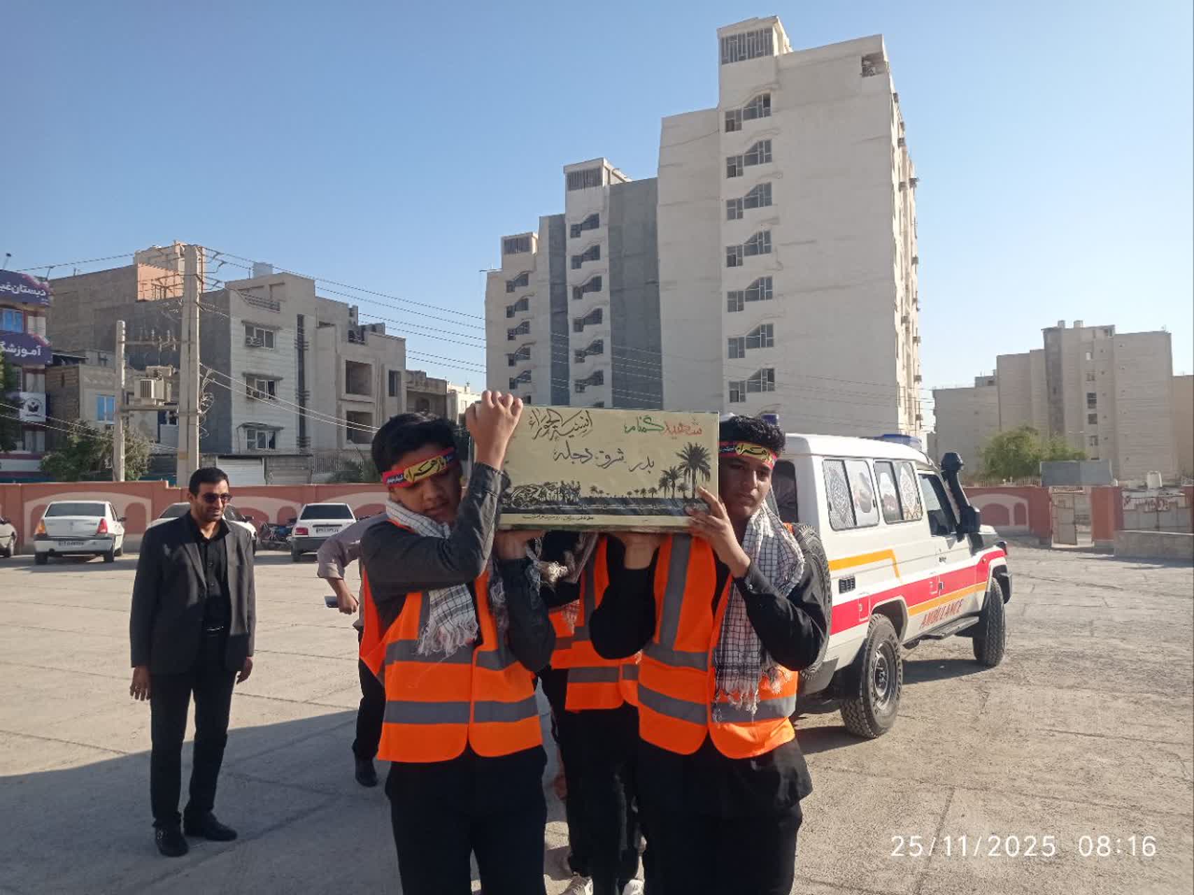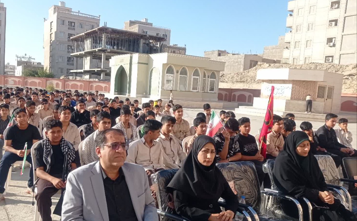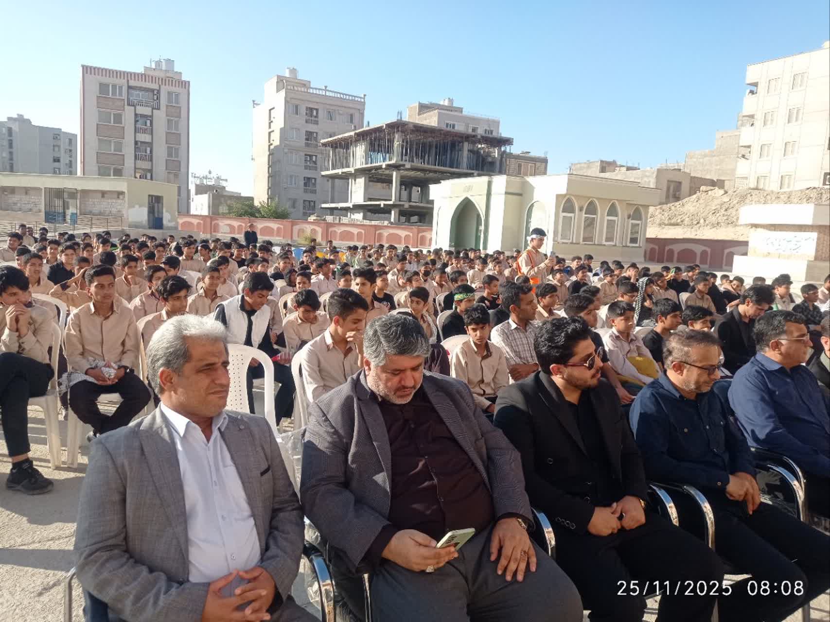 هرمزبان – پیکر مطهر شهید گمنام دفاع مقدس با استقبال پرشور دانش‌آموزان، فرهنگیان و خانواده‌های شهدا در مدرسه متوسطه اول شهید علیرضا آرمات بندرعباس حضور یافت و فضای مدرسه را آکنده از عطر ایثار، معنویت و حماسه کرد.