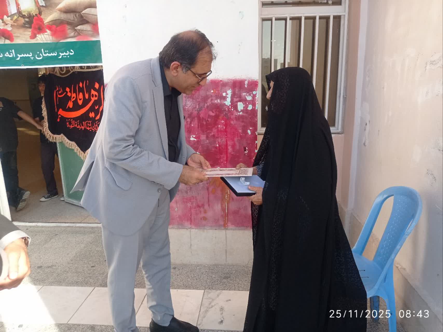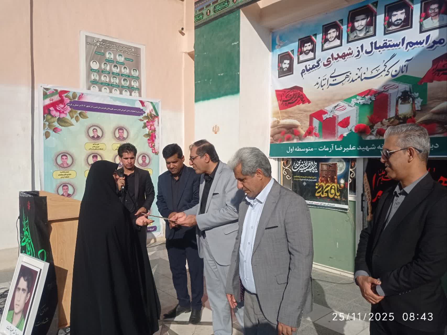 به گزارش پایگاه خبری هرمزبان ، این مراسم با حضور دکتر علی یگانه مدیر آموزش و پرورش ناحیه یک بندرعباس، محمد خارا معاون پرورشی و تربیت بدنی، خانواده شهید علیرضا آرمات و خانواده شهید عامری و جمعی از مسئولان و مهمانان برگزار شد.