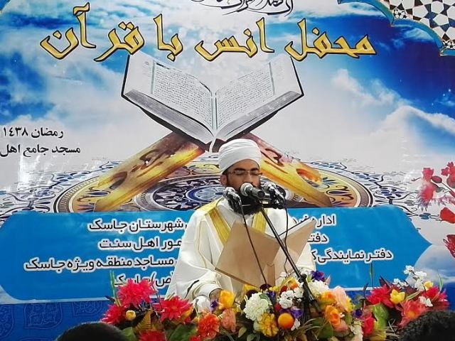گفتنی است، این محفل قرآنی به همت دفتر نمایندگی کانون های فرهنگی هنری مساجد منطقه ویژه جاسک و با همکاری اداره فرهنگ و ارشاد اسلامی، دفتر نمایندگی ولایت فقیه در امور اهل سنت و کانون فرهنگی و هنری شهید آوینی برگزار شد.