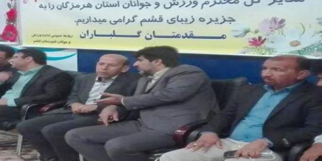 مدیرکل ورزش ووانان استان سپس ازمسابقات فوتسال قهرمانی روستایی وبازی های بومی ومحلی استان هرمزگان که درسالن تختی جزیره قشم جریان داشت حضوریافت و از مسابقه ی فوتسال تیم های روستایی جزیره ی هرمز و رودان دیدن کردند.