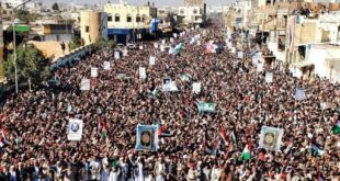 هرمزبان – مردم یمن امروز جمعه، ۱۲ ژانویه با شرکت در یک راهپیمایی باشکوه حملات متجاوزانه ائتلاف آمریکایی به کشورشان را محکوم و با شعار «فتح موعود و جهاد مقدس» حمایتشان از مردم فلسطین را اعلام کردند.