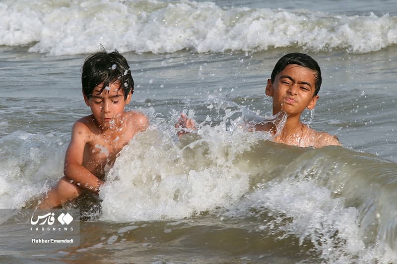 به روایت تصویر/ شنای خردسالان و کودکان در ساحل بندرعباس