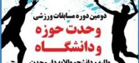 رئیس دانشگاه پیام نور بیرجند از برگزاری دومین دوره مسابقات ورزشی «وحدت حوزه و دانشگاه» خراسان جنوبی خبر داد و گفت: در مسابقات فوتسال این رقابتها دانشکده ابن حسام از سد حوزه رضویه گذشت و نهاد رهبری بر دانشگاه فرهنگیان غلبه کرد.