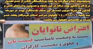 هرمزبان – شماری از نانوایی های بندرعباس امروز تعطیل بود. این تعطیلی ، اعتراض نسبت به وضعیت نامناسب قیمت نان و حقوق و معیشت کارگران عنوان شده است.